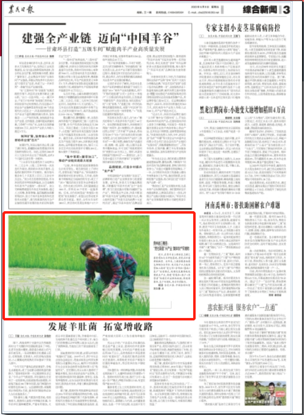 今天(6月9日),《农民日报》刊发新闻《贵州省三穗县:“党社联建”兴产业集体农户双增收》。