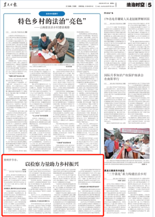 近年来,贵州省毕节市检察机关充分发挥检察职能,在三农领域能动履职,为民司法。通过支持起诉、公益诉讼、法律监督等方式,打击违法犯罪行为,帮助涉农企业依法维权,维护农民合法权益,在三农工作中干实事、真作为,以检察力量助力乡村振兴。