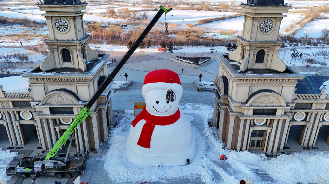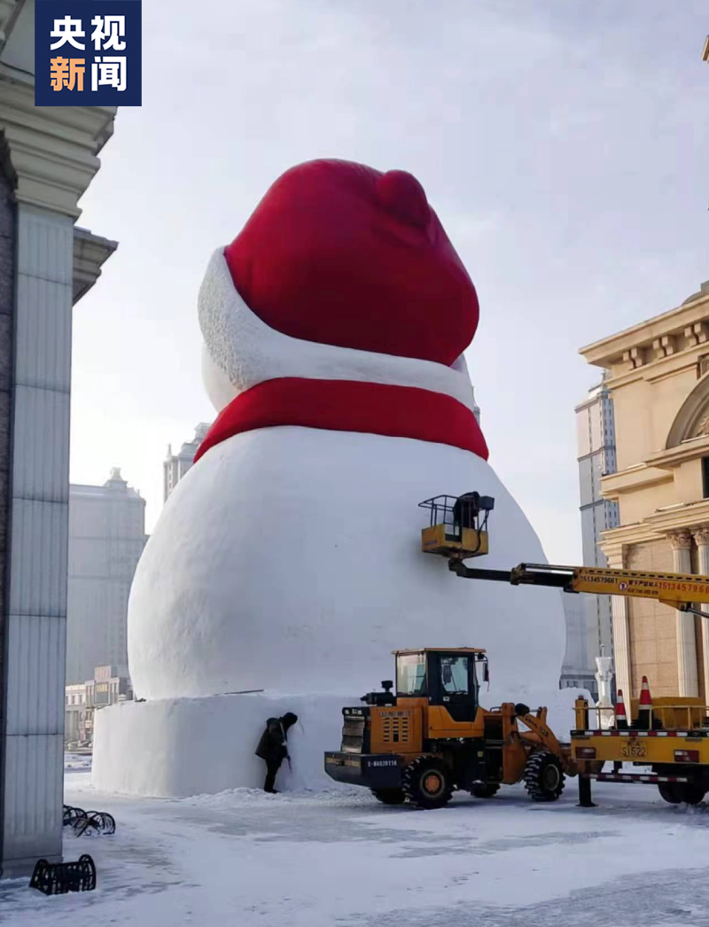 据悉,大雪人由上百人的施工团队制作而成