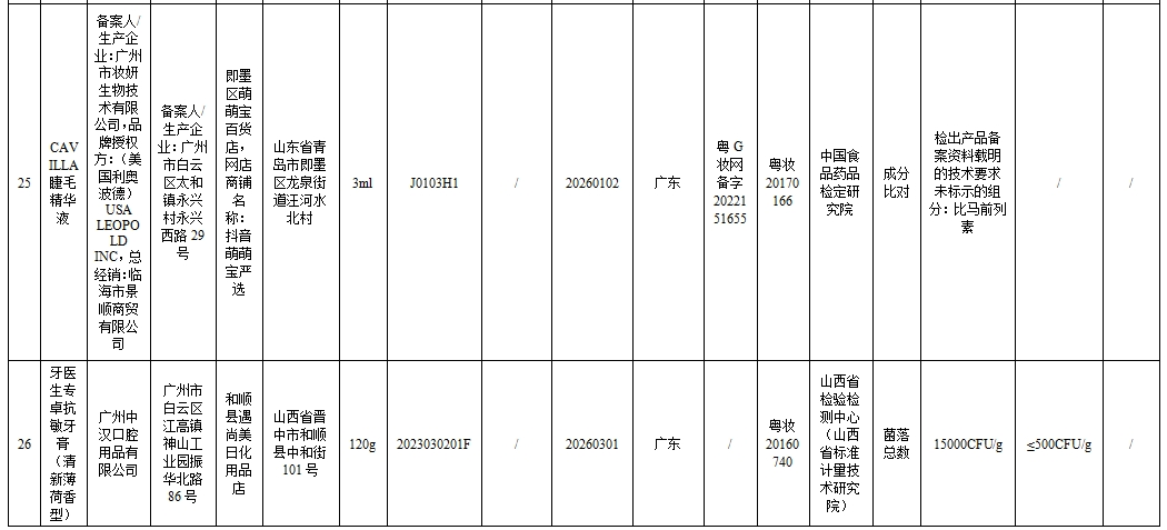 根据《化妆品监督管理条例》《化妆品生产经营监督管理办法》《化妆品抽样检验管理办法》,国家药监局要求北京、上海、江苏、浙江、江西、广东省(市)药品监督管理部门对上述不符合规定化妆品涉及的注册人、备案人、受托生产企业等依法立案调查,责令相关企业立即依法采取风险控制措施并开展自查整改。各省(区、市)药品监督管理部门责令相关化妆品经营者立即停止经营上述化妆品,依法调查其进货查验记录等情况,对违法产品进行追根溯源;发现违法行为的,依法严肃查处;涉嫌犯罪的,依法移送公安机关。