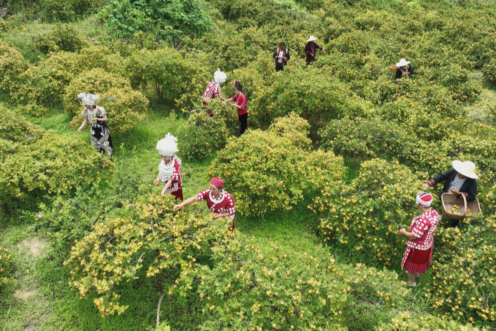 贵州山珍冠生态农业发展有限公司董事长余贵举说:“凤山镇、龙昌镇、道坪镇、仙桥乡这些成片的基地,通过公司+村级集体合作社+农户的形式,现在带动了1万余亩的刺梨种植,参与刺梨种植的农户总共有3000多户。”