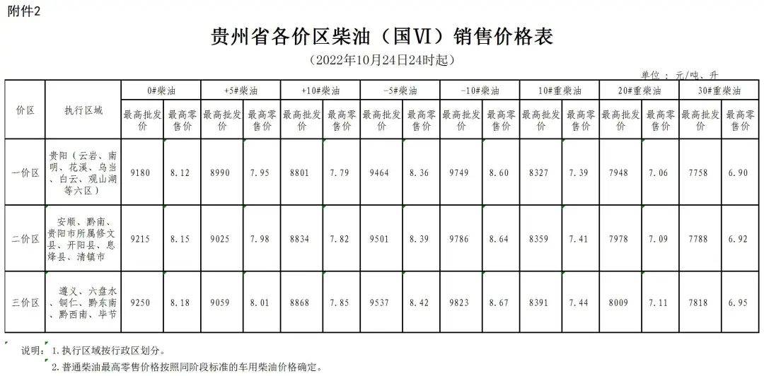 根据国家成品油价格形成机制,国家发展改革委决定自2022年10月24日24时起上调国内成品油价格。按照国家相关调整要求,我省89#汽油(国VIA)、0#柴油价格每吨在现行标准基础上分别提高185元和175元,具体价格可由各经营企业在不超过最高批发、零售价格的前提下确定。调整后各油品具体最高价格见附件。