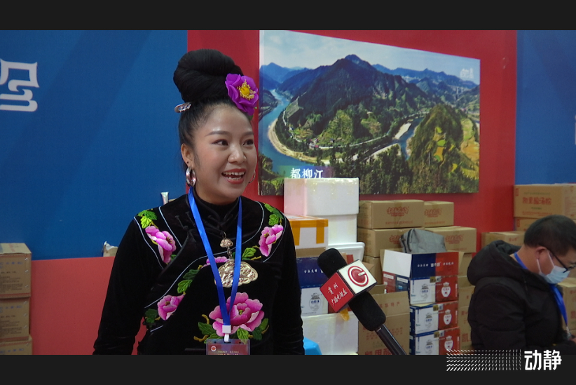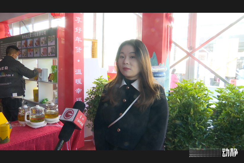 贵州亮欢寨生物科技有限公司演艺团长金婷向我们介绍到:“我们这边是黔东南凯亮欢寨的酸汤,主要有白酸和红酸,感谢政府为我们搭建了这样一个平台,春节快到了会吃一些油腻的东西,希望我们的酸汤能给大家增加一些食欲,缓解一下胃口。”