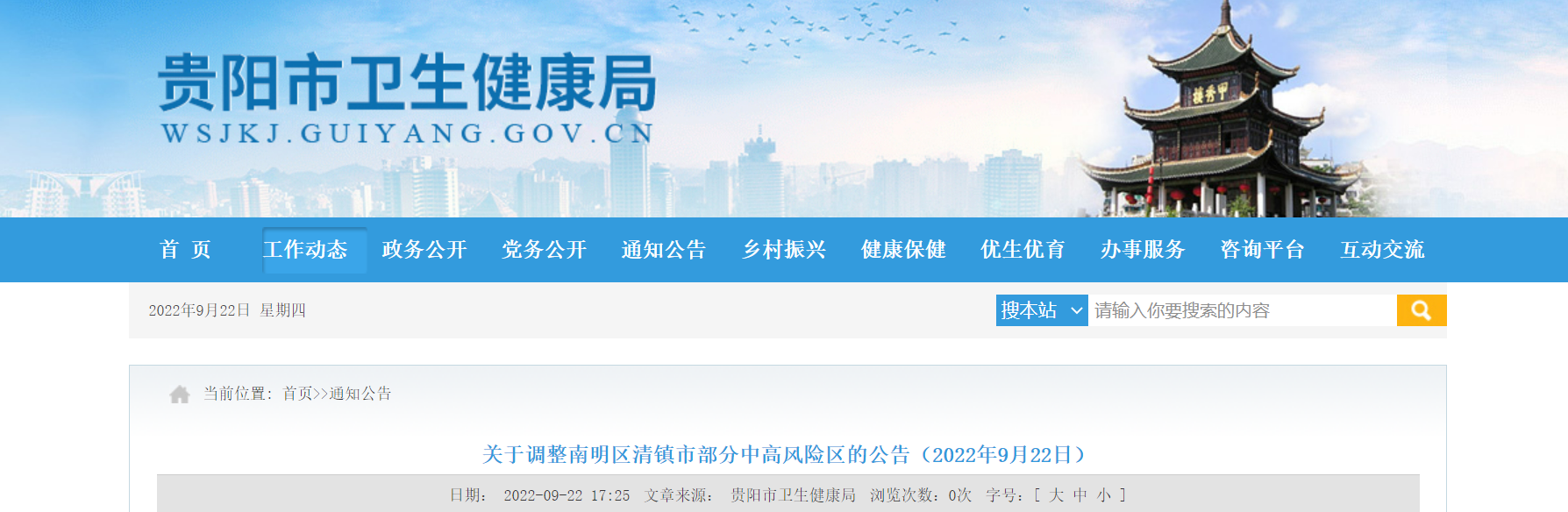 关于调整贵阳市南明区清镇市部分中高风险区的公告(2022年9月22日)
