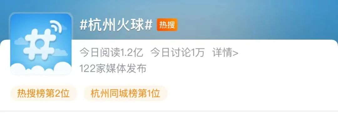 随后,“杭州火球”迅速冲上热搜榜单,吸引了超1.2亿阅读。