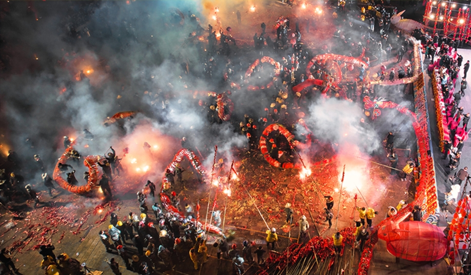 玩龙灯已经成为黔东南州施秉县春节不可缺少的一道民俗风景,距今已有600多年的历史。据悉,每年春节从农历正月初九到正月十四期间,施秉都会举办龙灯展演和比赛。龙灯花车巡游、群龙竞舞、炸龙狂欢、烟花秀、打铁花……精彩纷呈的节目,喜庆祥和的节日氛围,让这个年热烈不断。
