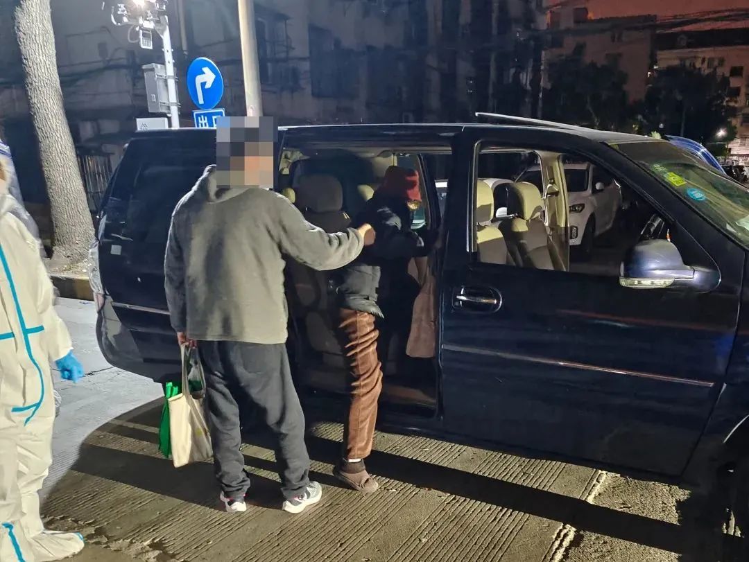 19日凌晨2时,社区民警及居委会工作人员一同上门,长时间敲其房门均无反应。因担心发生意外,安排锁匠打开第一道门锁(此门系楼道内两户人家共用的隔断门)。工作人员到其门口反复敲门后,张先生自行打开房门。民警进入室内告知靳阿婆、张先生配合防疫的义务和集中转运的安排。经沟通,两人表示同意并自行下楼乘坐转运车辆。