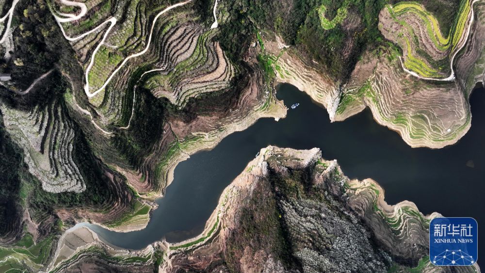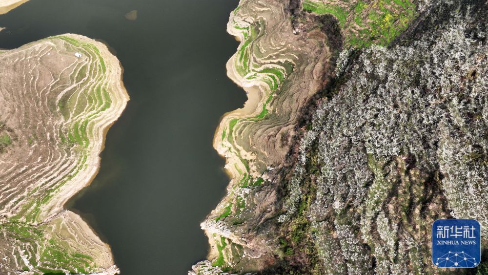 3月10日拍摄的开阳县龙水乡龙溪村的乌江河畔景色(无人机照片)。