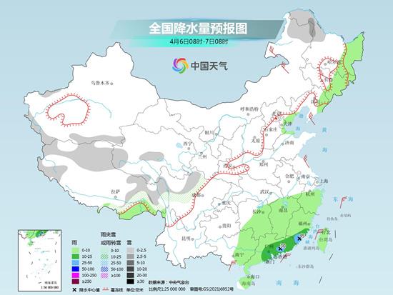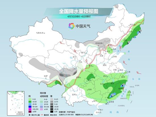 今天(4月4日),我国中东部强降水仍在继续,江南大部、华南北部等局地将遭遇大暴雨,部分地区还将伴有强对流天气。伴随着雨雪,中东部降温区域进一步扩大,东北、华北、黄淮等降幅可达4~8℃。