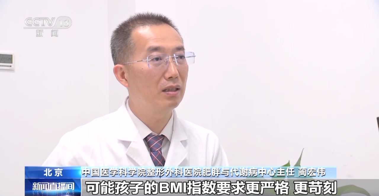 中国医学科学院整形外科医院肥胖与代谢病中心主任 蔺宏伟:最基本的一项是要孩子大于16岁以上。内科医生、儿科医生、营养科医生多学科诊治过程中还是没有办法控制孩子的体重,这个时候可以考虑代谢外科手术治疗。不要很草率地去选择外科手术来给孩子治疗肥胖。要有巨大的获益我们才会选择做手术。减重代谢外科手术整体来说是安全的,有效的。医生和家长共同协商,一起分析,给孩子一个最好的选择。
