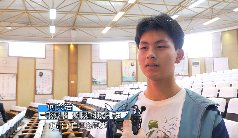 一等奖获得者 贵州交通技师学院 学生 何兴浩:我感觉非常开心,比赛结果超出了自己的预期,在这次比赛中我学到了很多东西,也看到了其他省的选手的比赛精神。