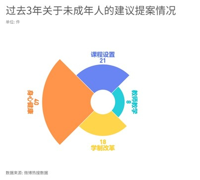 430条建议提案中,和未成年人相关的达到87条,占比超过五分之一。其中,关于未成年人身心健康的建议提案最多。