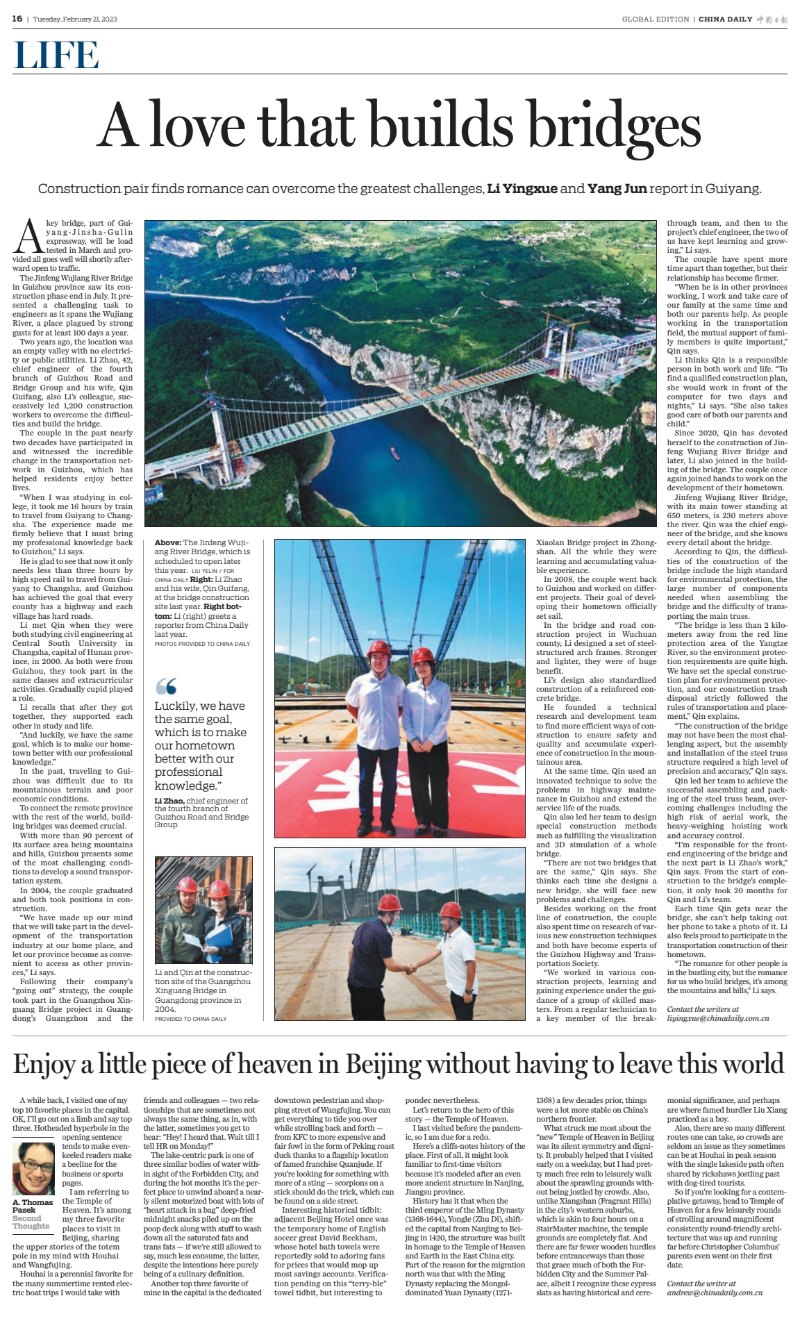 在建中的金烽乌江大桥全长1473.5米,主跨650米,两年前,这座宏伟的大桥所在之处,还是一座空空的山谷,没有通电,也几乎没有任何公共设施。从开工建设到去年7月大桥合龙仅用时约20个月,李钊、秦贵芳夫妻二人共同携手,带领1200名建筑者,再次谱写了中国速度与中国质量的新篇章。“世界上不存在两座相同的桥。”秦桂芳说,每设计一座桥,都要面对新问题、新挑战,总会有细微不同,所以一定是精益求精,从细节上把品质提上去。