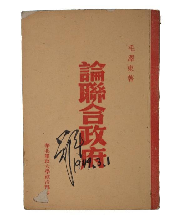 中国印刷博物馆现藏《论联合政府》书籍一册,毛泽东著,1948年华北军政大学政治部印,长18.5厘米,宽12.5厘米,平装铅印本,全书从右向左竖排,共114页。