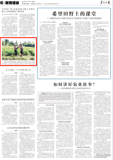 今天(7月22日),《农民日报》刊发图片新闻,关注贵州省道真县不断拓宽乡村一线人才引进渠道,推动当地农业产业发展。