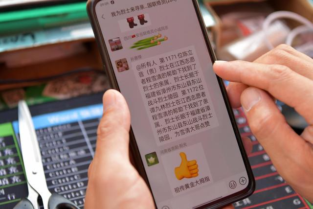 成功为烈士寻亲后,程雪清都会在各个烈士寻亲群进行公告,为的是让更多人加入这支队伍中。如今,在他的影响下,即将大学毕业的儿子也加入进来,一些大学的青年志愿组织主动联系程雪清希望参加为烈士寻亲工作。