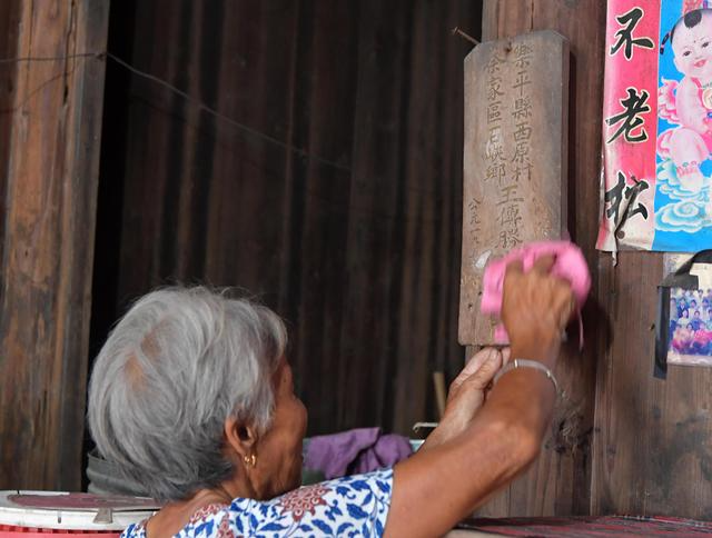 在江西省乐平市,今年85岁的程大妹在家中擦拭抗美援朝牺牲烈士王传胜的牌位。王传胜1950年参军,作为未婚妻的程大妹一直等着他回家完婚,但是却等来了王传胜牺牲的消息。多年来,程大妹一直保留着王传胜牺牲时留下的遗物。2021年,程雪清帮助她找到了位于朝鲜开城的中国人民志愿军烈士陵园的合葬墓位置(7月6日摄)。新华社记者 彭昭之 摄
