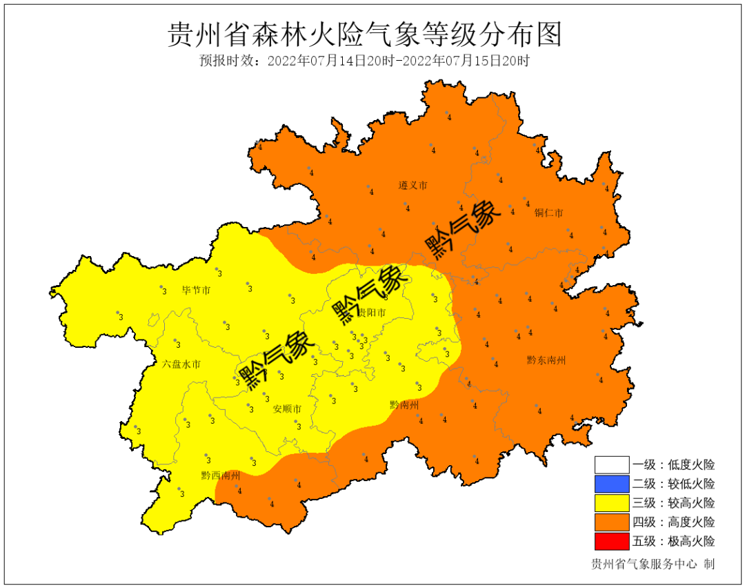 今天夜间到16日白天,全省多云到晴,南部地区局地有分散阵雨或雷雨,铜仁市、遵义市大部、黔东南州大部、黔南州南部边缘、黔西南州东南部边缘午后有35℃以上高温,东北部局地超过37℃,赤水河谷超过40℃,省的中北部地区有4-6级偏南风,瞬时风力可达6级以上;