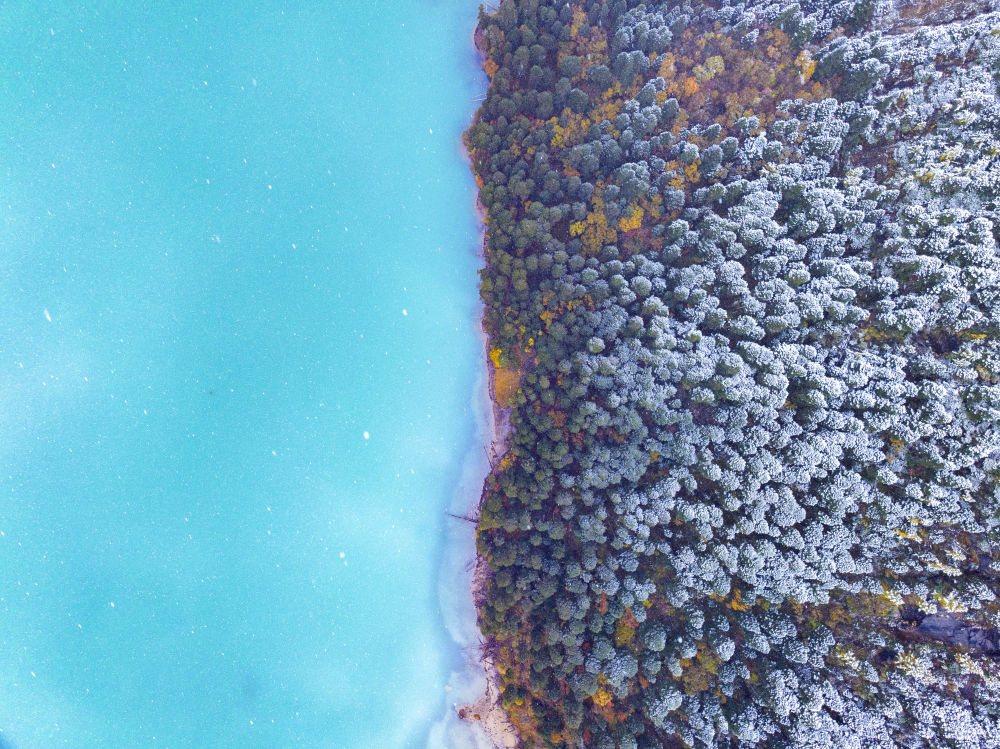 这是在林芝工布江达县拍摄的雪景(无人机照片,10月28日摄)。 新华社记者 姜帆 摄