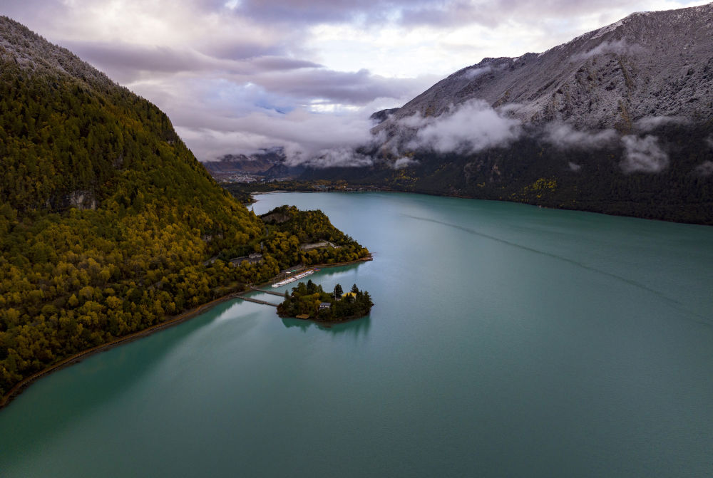 这是在林芝工布江达县拍摄的巴松错(无人机照片,10月28日摄)。 新华社记者 姜帆 摄