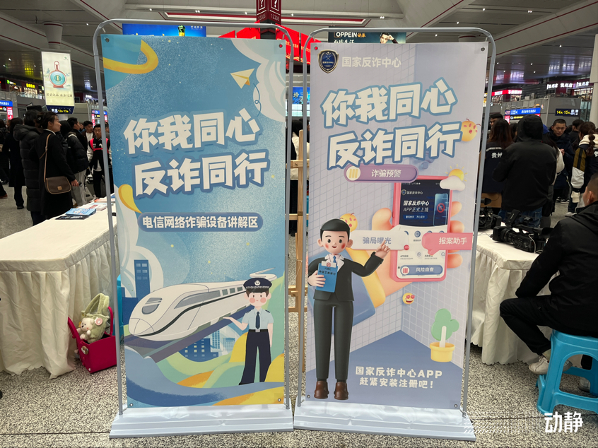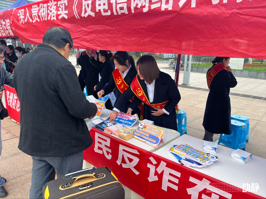 12月1日,在《中华人民共和国反电信网络诈骗法》正式实施一周年之际,贵州省反诈骗中心联合各大运营商和十家金融机构在贵阳北站开展反诈法一周年宣传和“宪法宣传周”反诈普法活动。活动通过在车站广场以及候车厅等摆放宣传展板、发放宣传手册、有奖问答、开展法律咨询等形式,向群众宣传宪法以及反诈知识。
