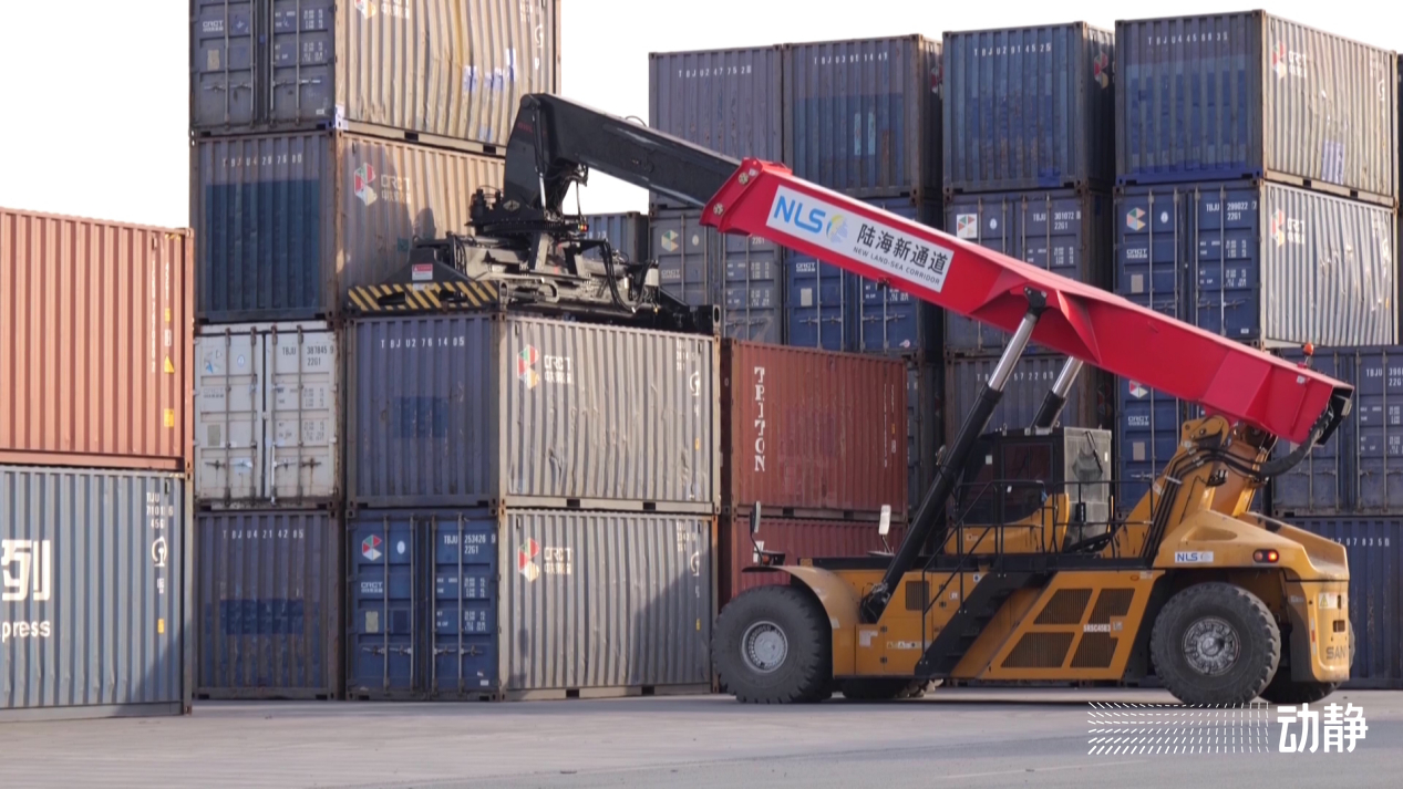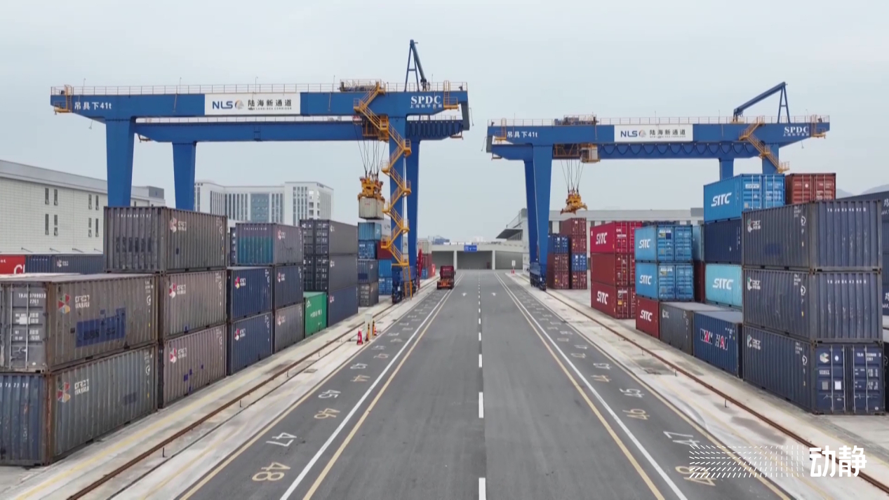 在位于重庆国际物流枢纽园区的重庆汽车整车进口口岸,上千台国产车整装待发,即将运往海外。不远处的陆海新通道重庆无水港内,高约30米的远控龙门吊起落不停,正在为铁海联运班列运送货物。