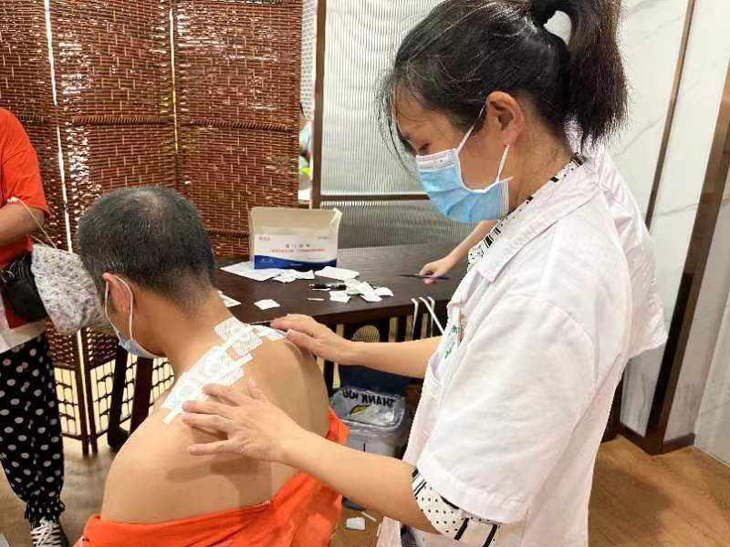 “连续两年,中心的医生们都会给我们贴三伏贴。前两天刚刚入伏,今天就为我们一线环卫工人做专场的免费服务,让我们很感动,也让我们工作的时候更安心。”47岁的刘爱华师傅感慨不已。