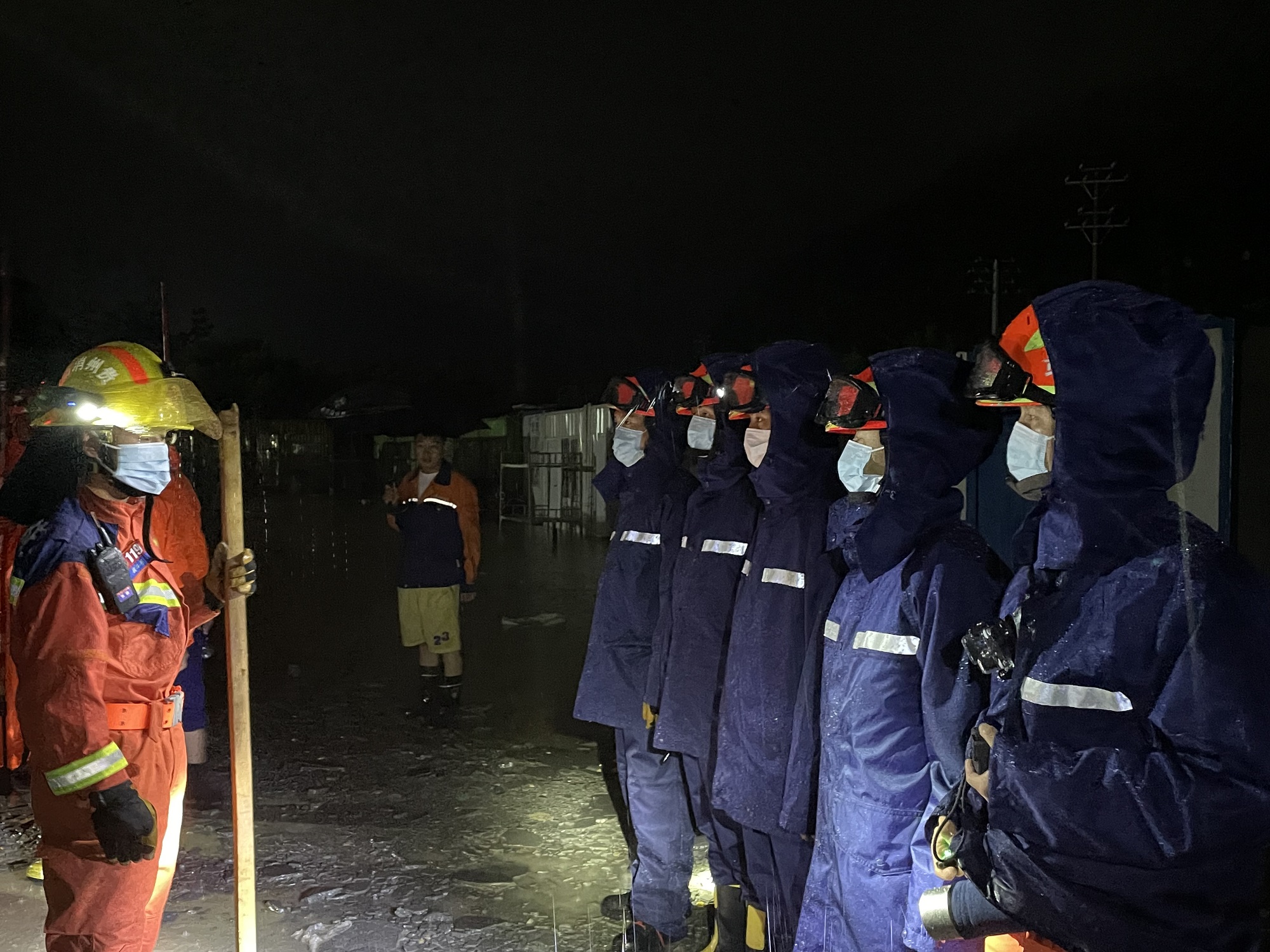 途中,消防救援人员与报警人取得联系并且确认现场断电情况。到达灾情现场经询问侦查发现,该工地宿舍有百余人住宿,目前大水已经淹没至一楼床铺边缘,情况十分危急。