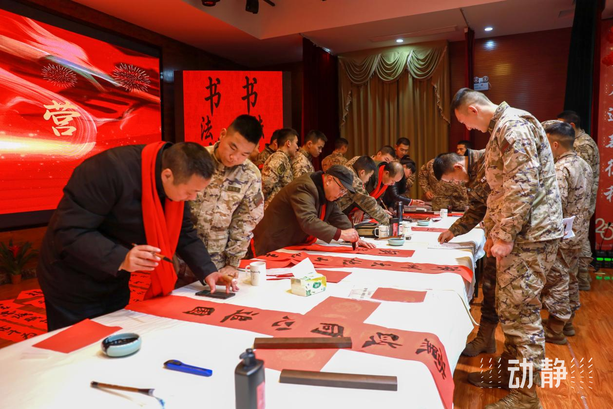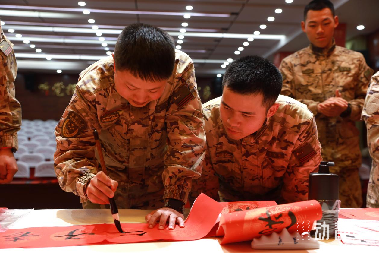 “福字”传递美好祝愿,春联书写强军心愿。官兵们在幽幽墨香中领略到传统文化的魅力,在一笔一划中感受到驻地人民的关爱。