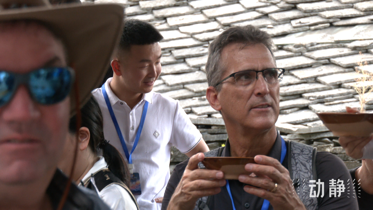 参观过程中,2024“视觉@中国”贵州行采风团成员在屯堡品尝苦丁茶,感受当地的民风民俗。