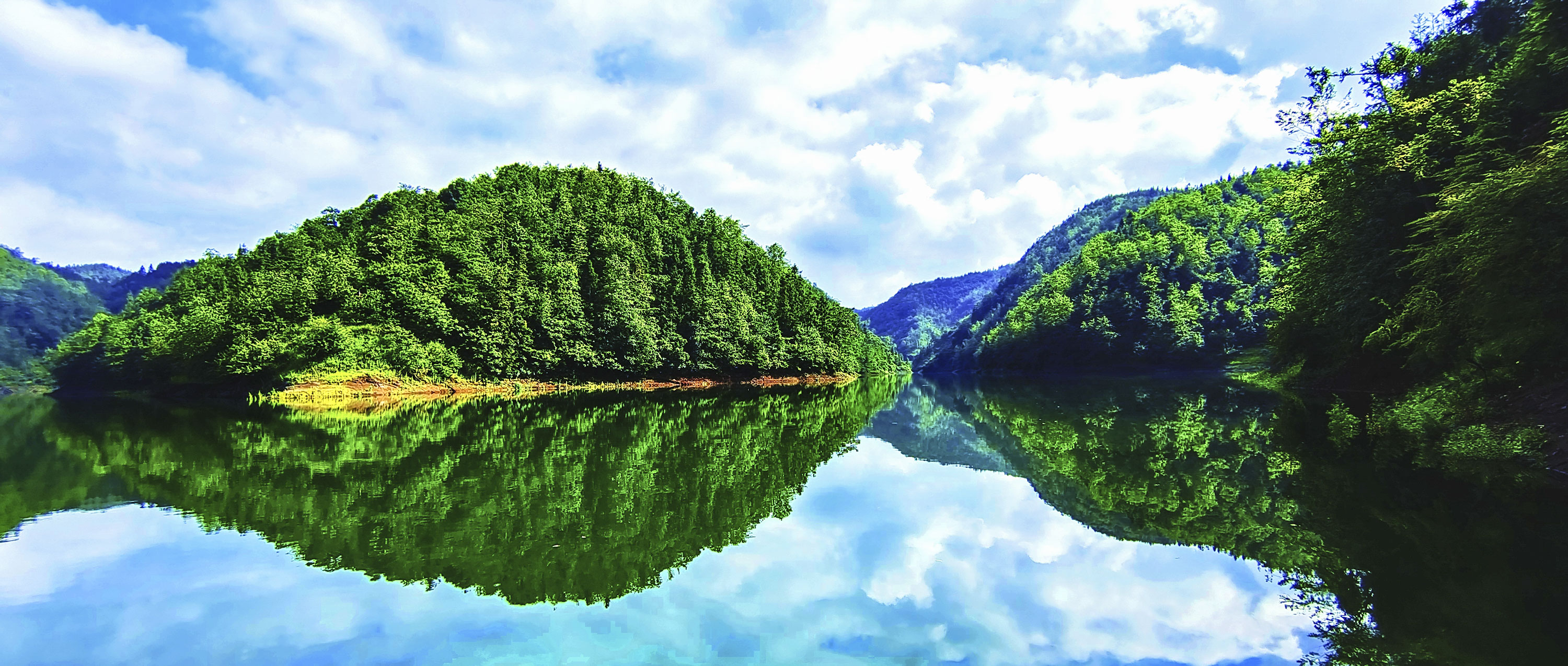 初秋,盘州市清底河水库水面平如镜面,倒映着天边的彩霞,随着气温渐渐升高,湖面雾气缓缓升腾,缭绕着周边的青山和村庄,亦幻亦真,宛如人间仙境。