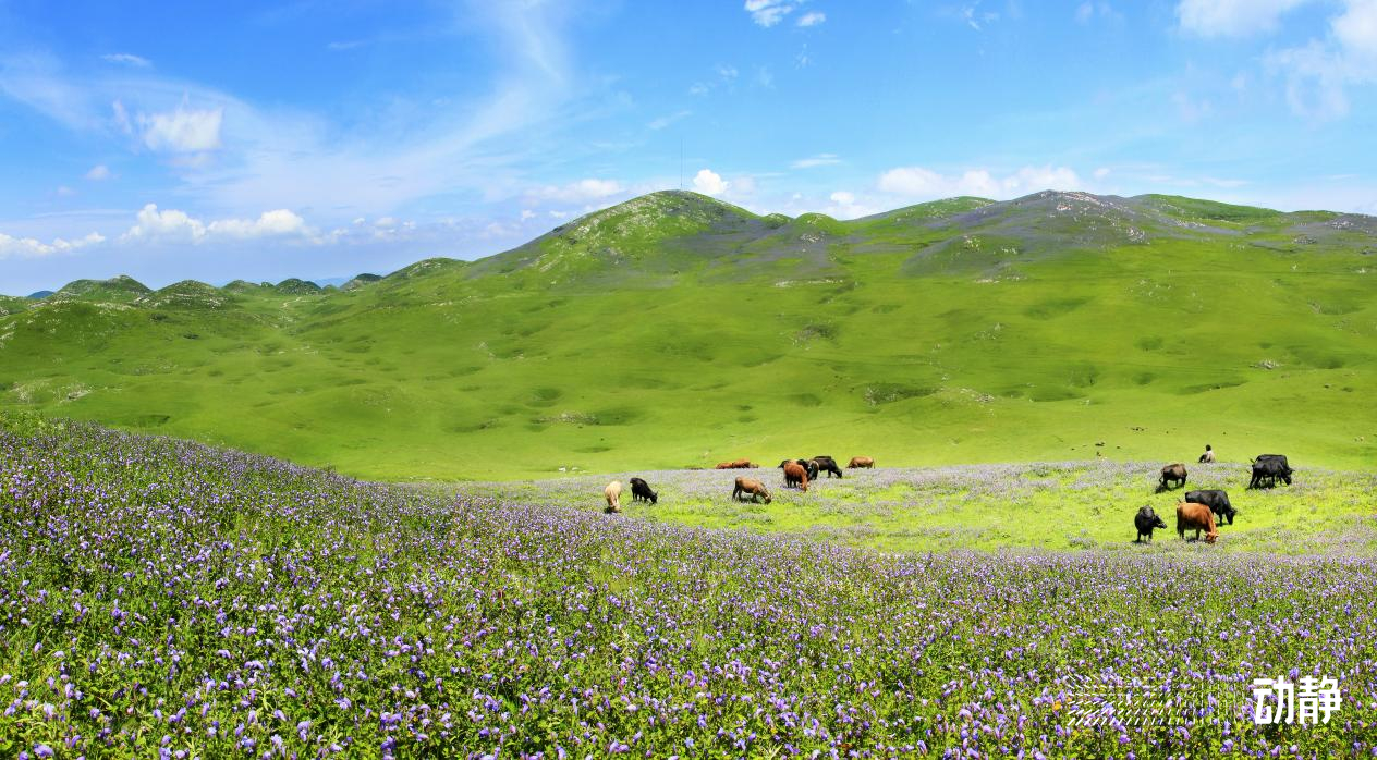 威宁县的百草坪,是乌蒙山地区最大的天然草场,有中国南方大草原之称。漫山遍野,牛羊成群。