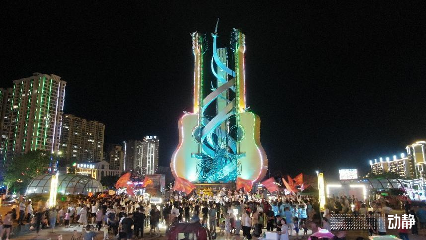 在正安这座小城,随处可见“吉他”。广场上屹立着巨型吉他雕塑,街边的路灯,灯柱、灯箱也是吉他造型,公园里也有吉他元素↓