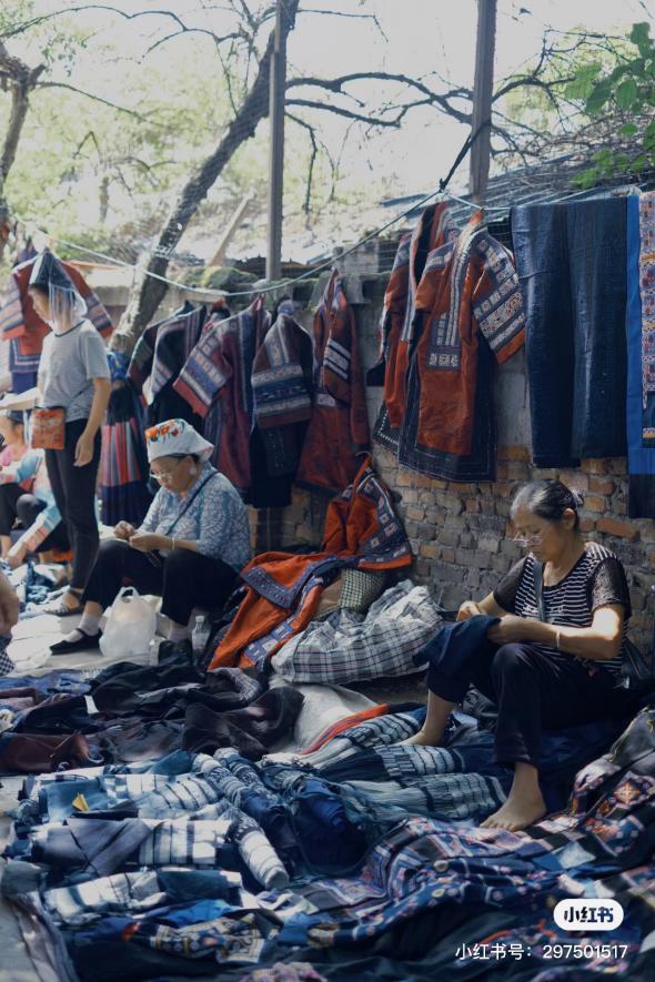在这里,你能看到精妙绝伦的苗族刺绣、苗族蜡染,有被称为“穿在身上的苗族史诗”的苗族百鸟衣,还有水族马尾绣。不仅是赶集逛街购物,还是一次欣赏艺术品的好机会!绝大部分绣品的制作技艺都是国家级的非遗技艺,你可以一边逛一边了解非遗,感受非遗的魅力。