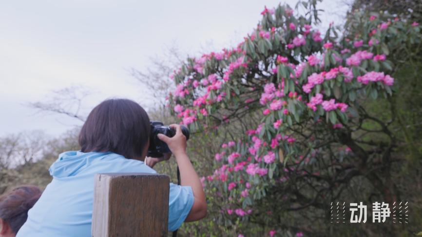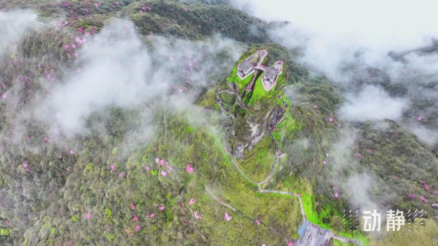 世界自然遗产地梵净山的杜鹃花迎来最佳赏花期,沿着倾斜的山坡,花朵层层叠叠遍布山头。由于梵净山金顶一带海拔超过2000米,加上昼夜温差较大,这里的杜鹃花花期延后了近一个月。为了方便游客近距离赏花拍照,景区还开放了一条专门的赏花长廊。