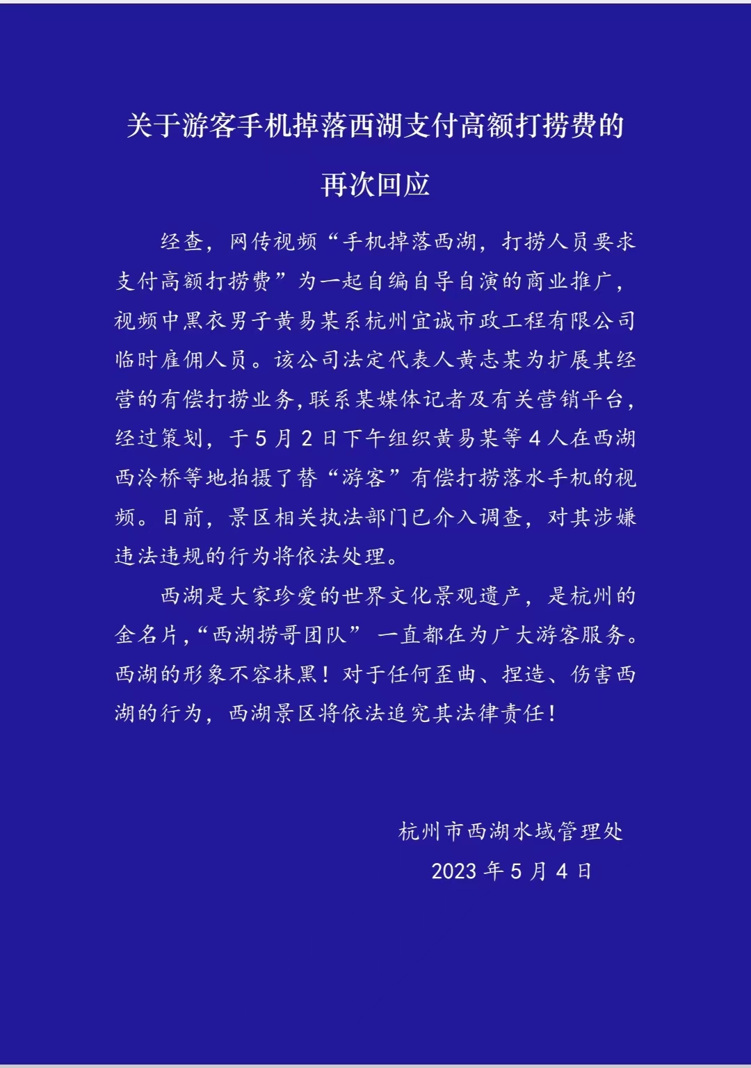 目前,西湖景区相关执法部门已介入调查