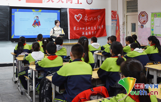 在消费者权益保护课上,研支团成员刘妍和黄小渭为学生们讲解了国际消费者权益日的由来、“3·15”的标志及其意义、消费者组织的发展历史、消费者享有的合法权利、消费权益受侵害时如何维权等方面内容。