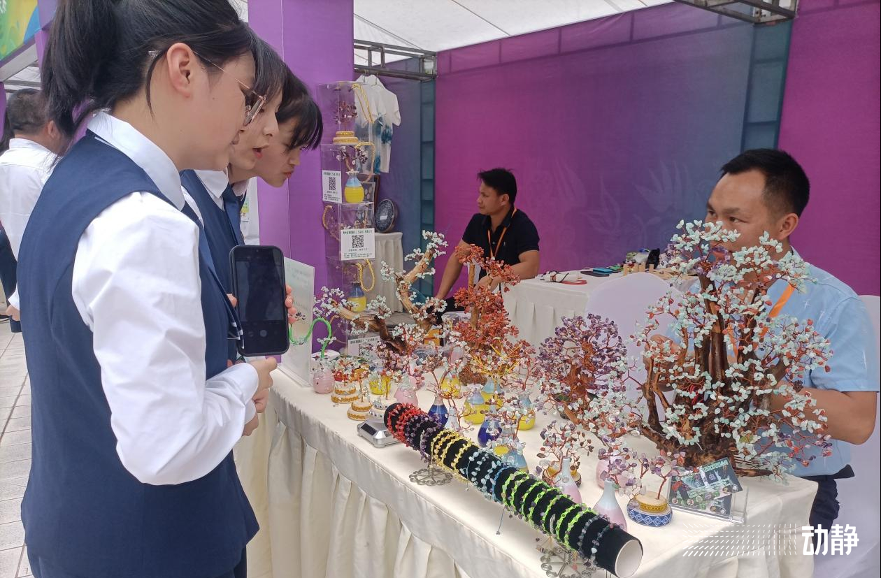 这里不仅有6斤重的纯银茶具、亿万年前的蜗牛化石等355件民族文化精品展出,还有竹编陶艺茶杯、刺绣装饰画等300多款工艺品进行集中展示销售。活动现场,参赛选手们还会进行工艺品创作制作,展示手艺绝活。