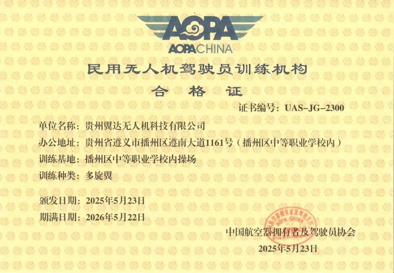 现在,翼达公司的业务已经遍及全市各地,解决了18人的就业难题。在助力农业发展的同时,他还在播州区中等职业学校开设CAAC无人机执照培训班,“期望培养更多的新型农民,通过无人机作业,实现稳产增收、就业创业。”卢俊州说。