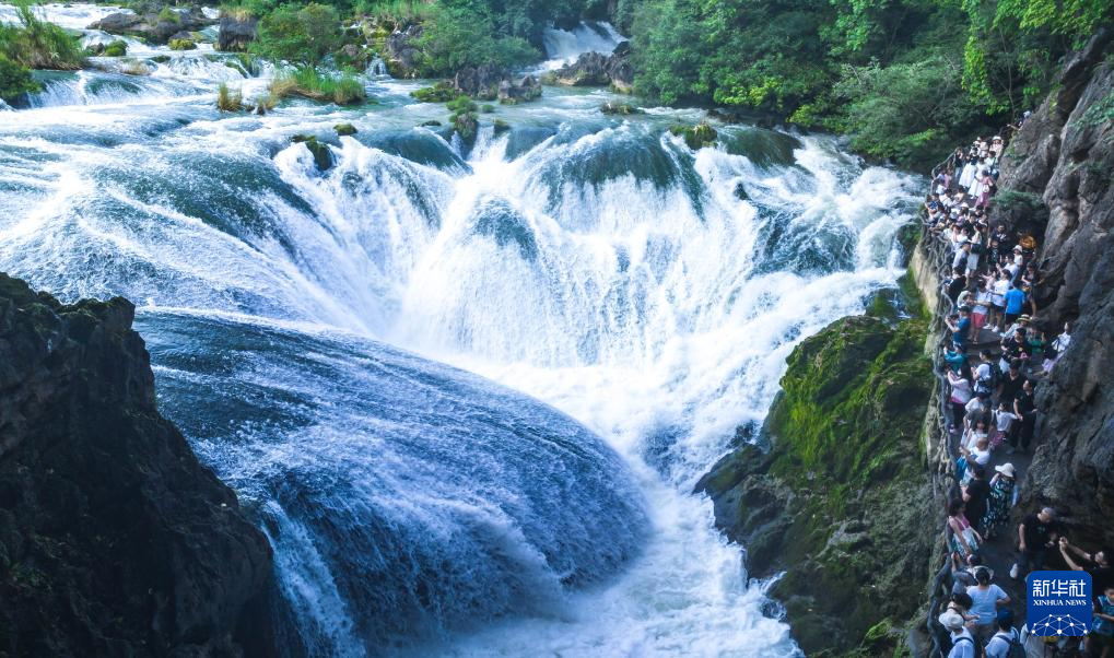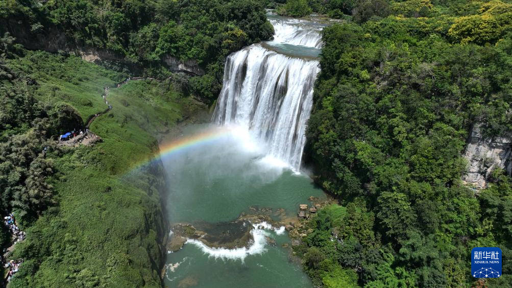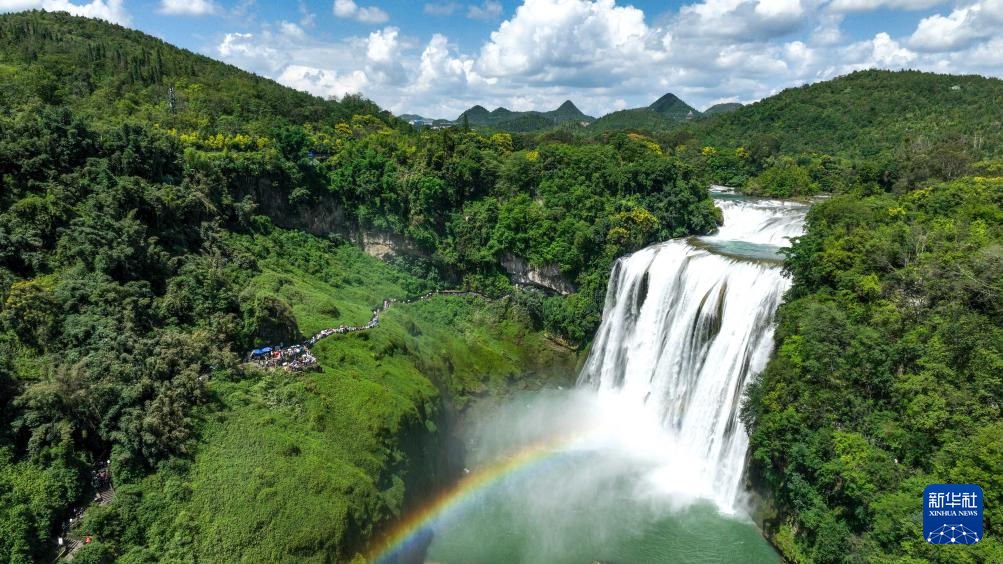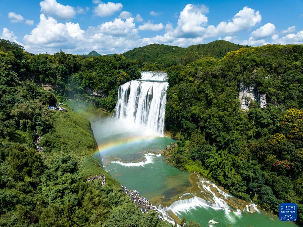 初秋时节,位于贵州省安顺市的黄果树瀑布景区进入一年中的最佳观赏期。大瀑布奔腾而下、气势磅礴,前来观赏游玩的游客络绎不绝。