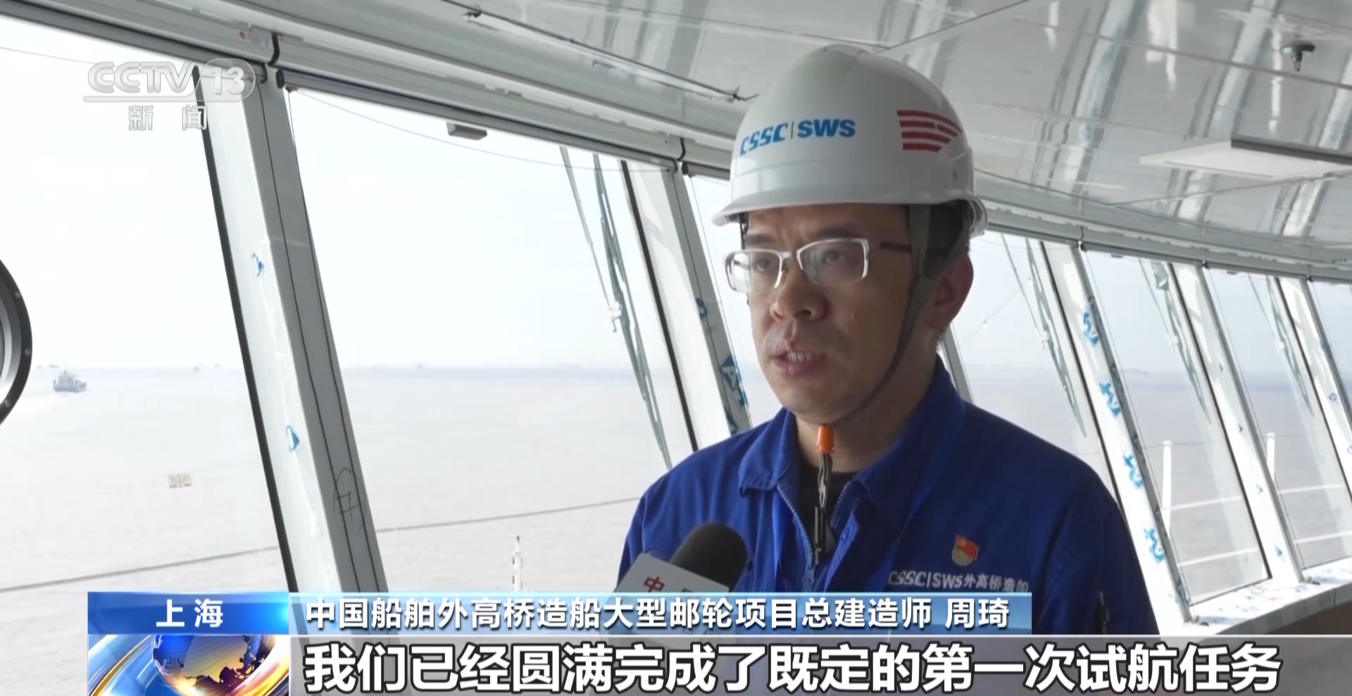 中国船舶外高桥造船大型邮轮项目总建造师 周琦:我们已经圆满完成了既定的第一次试航任务,它不仅仅是对船舶的航行动力来进行验证,还对全船的舒适性以及各项系统的完备性来进行检查,是第一次如此大规模的综合验证。
