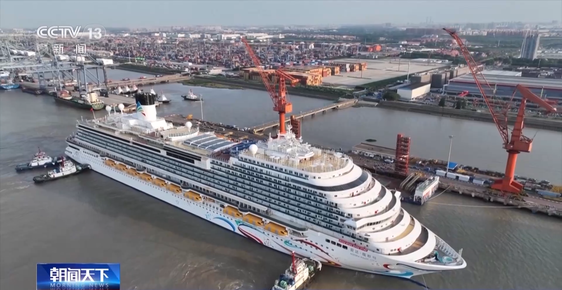 总台央视记者 吴天白:在4艘拖轮的帮助下,首艘国产大型邮轮正在缓缓地靠泊上海外高桥码头,这次试航从7月17日开始,历经8天,试航任务涉及推进系统、操作系统以及舒适性等60余项试验任务。