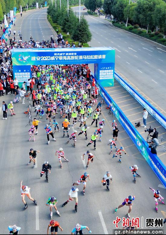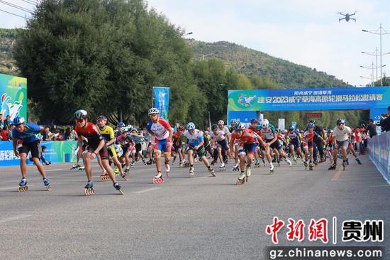 9月24日上午,建安·2023威宁草海高原轮滑马拉松邀请赛鸣枪开赛,赛事共吸引1000余名轮滑专业运动员和轮滑运动健身爱好者在贵州省毕节市威宁县同场竞技,选手们脚踩“风火轮”,尽情驰骋乌蒙山巅,逐梦草海湖畔。