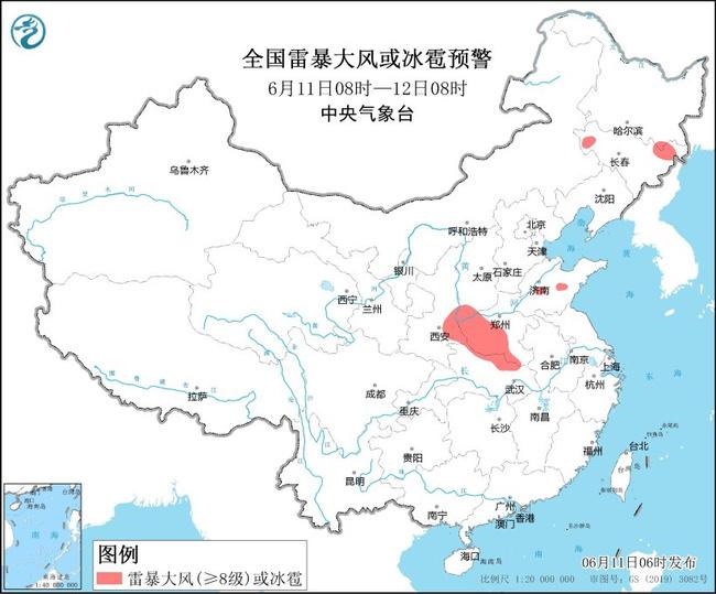 中央气象台6月11日06时发布强对流天气蓝色预警:预计6月11日08时至12日08时,吉林东部和西北部、陕西东南部、山西南部、山东中部、河南中西部和南部、湖北北部等地的部分地区将有8-10级雷暴大风或冰雹天气;内蒙古东部、吉林东部和西北部、辽宁东部和西南部、新疆北疆北部和伊犁河谷、陕西东南部、河北东北部、山东中南部、河南南部和西部、湖北北部和东部、福建东南部、云南西南部、广东西南部和东部沿海、海南岛东北部、台湾岛北部等地的部分地区将有短时强降水天气,小时雨量20-40毫米,局地可达60毫米以上。