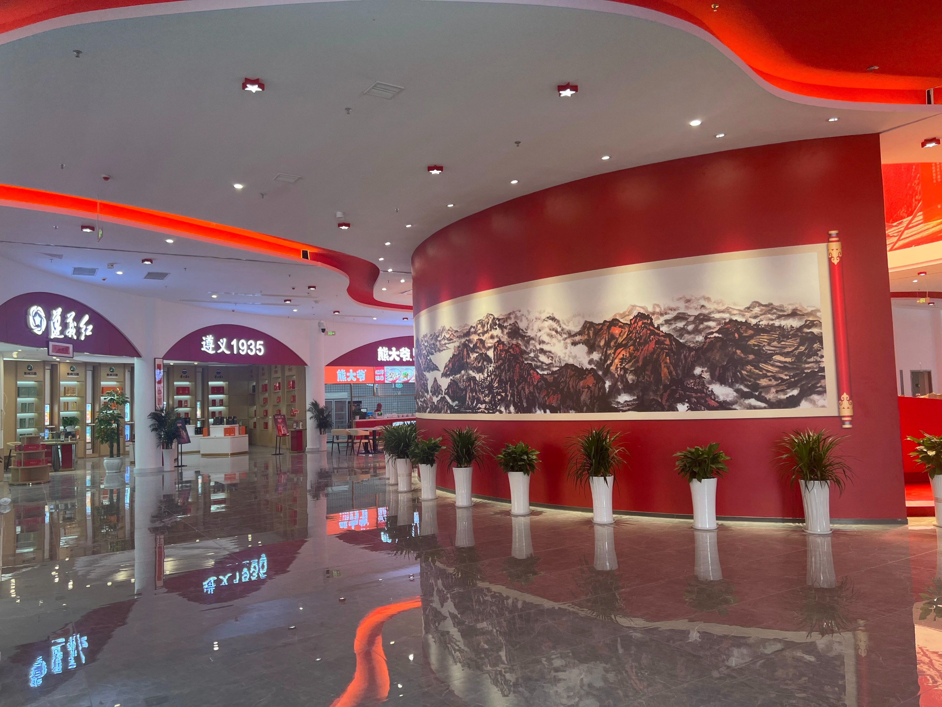 走进综合服务楼,记者看见该服务区内地板、墙壁、灯饰等都融入了长征文化元素。在一楼,商铺、地方特色小吃、就餐区等应有尽有。