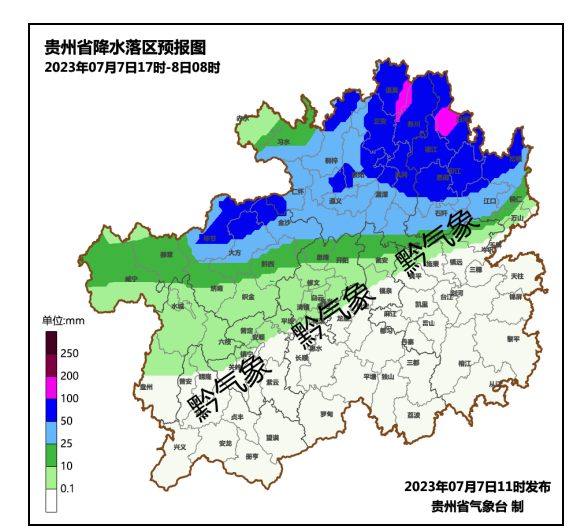 周五(7日)傍晚到夜间,省的北部地区阴天间多云有阵雨或雷雨,雨量中到大雨,毕节市东北部、遵义市东部、铜仁市中北部局地有暴雨,部分乡镇大暴雨,其余地区多云有分散阵雨或雷雨。