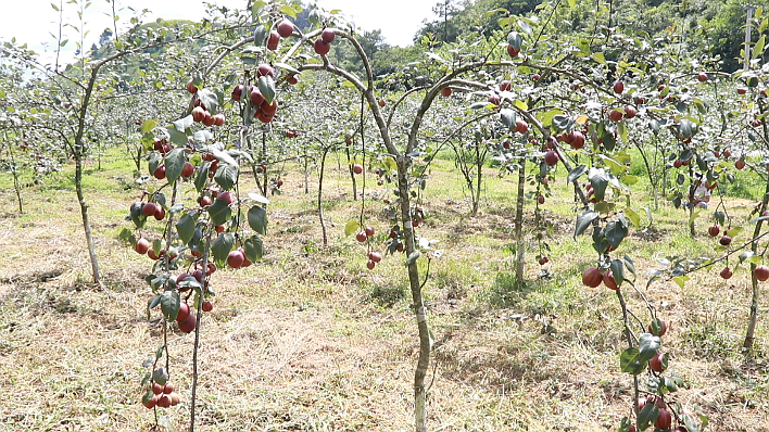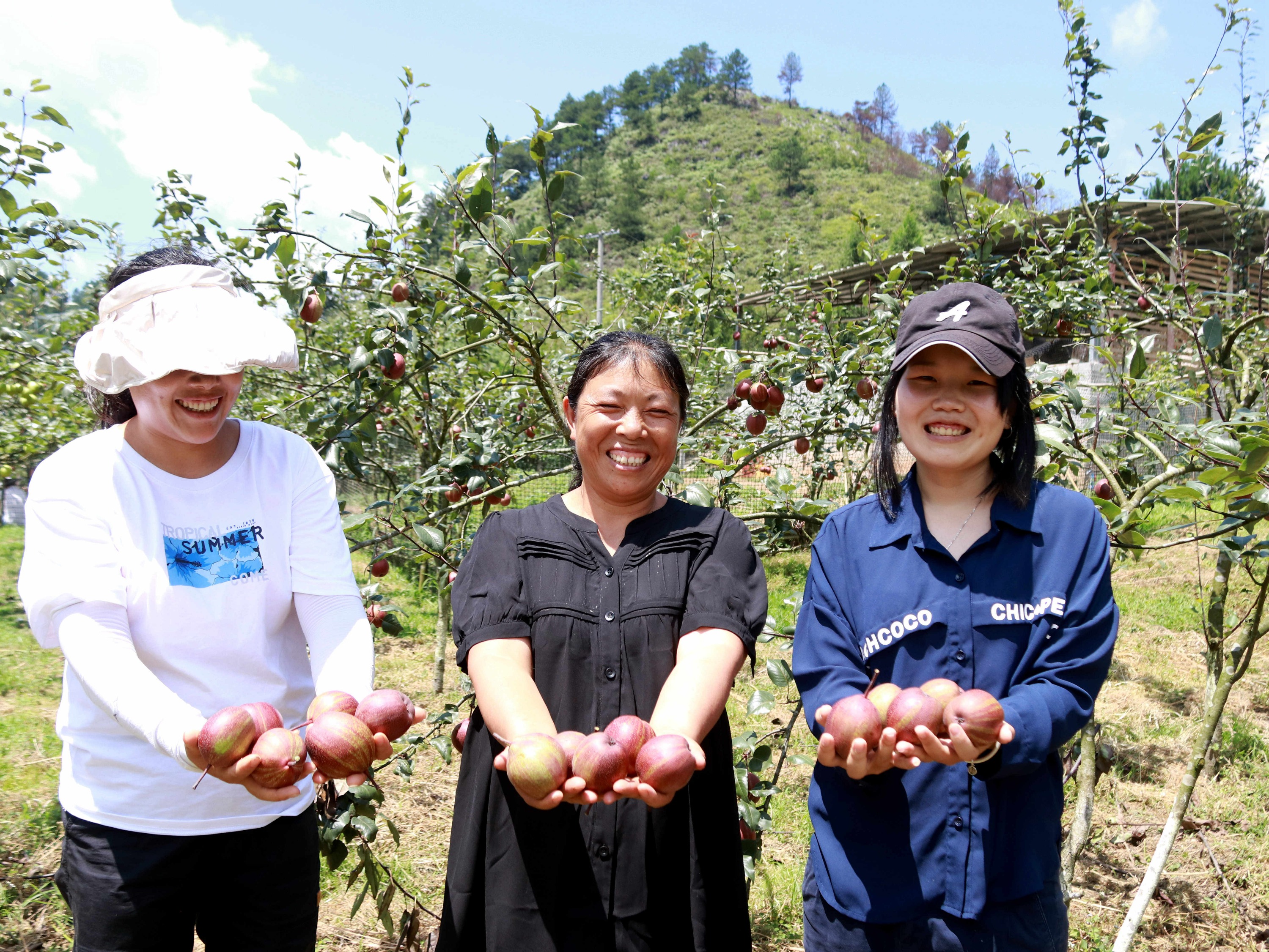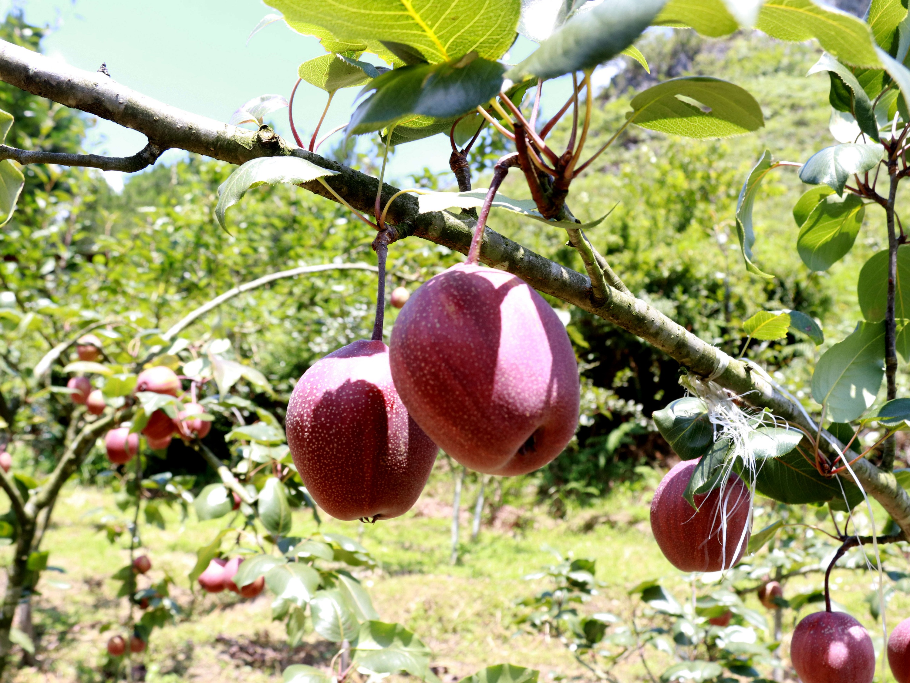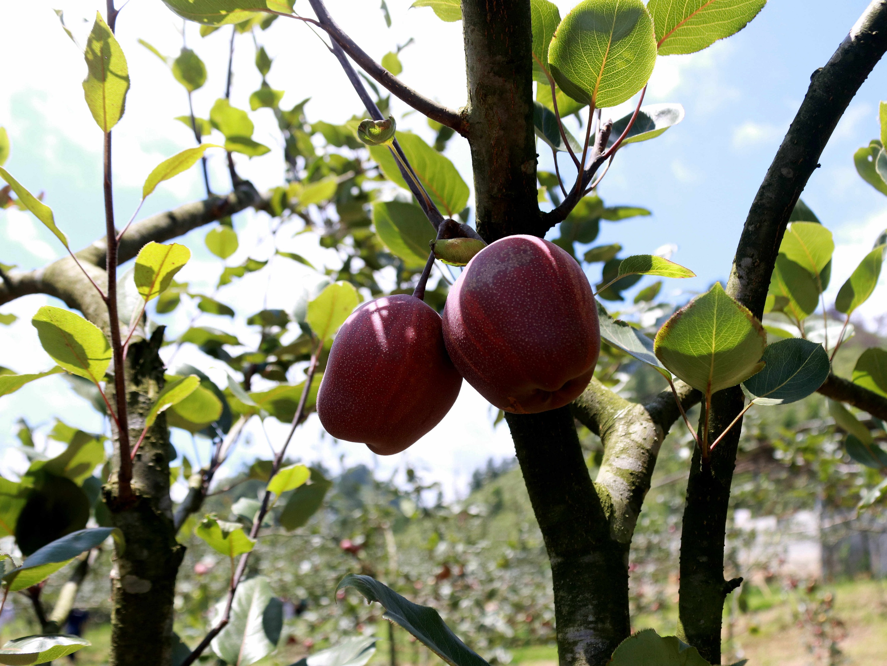 漫步梨园内,处处果香四溢,来到果园里采摘的游客既不用踮脚,更不用爬树,伸手即可摘到外皮红紫可人、内里清甜多汁的优质红梨,尝上一口就令人口齿生津、回味无穷。