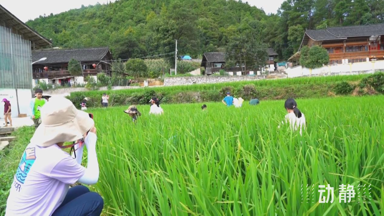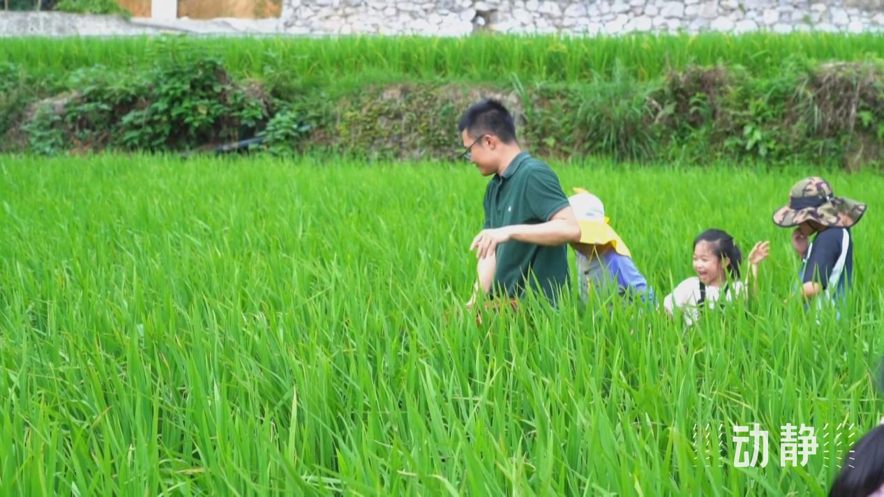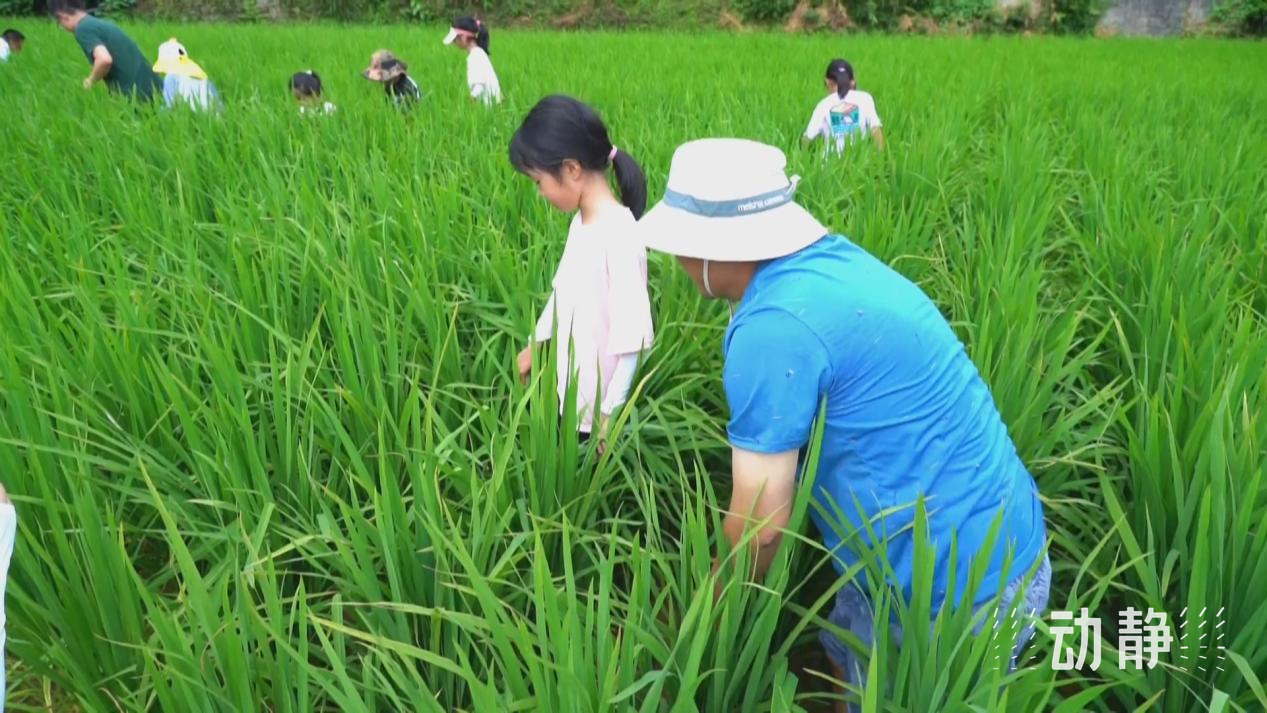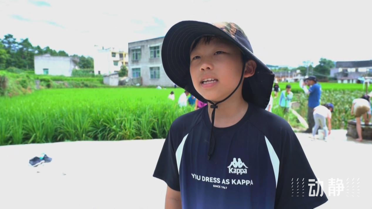 深圳游客李伯安说,走在田里面感觉挺紧张的,因为每步都要仔细观察脚下,我很少下田,然后到田里总怕踩到什么,感觉挺新奇的。