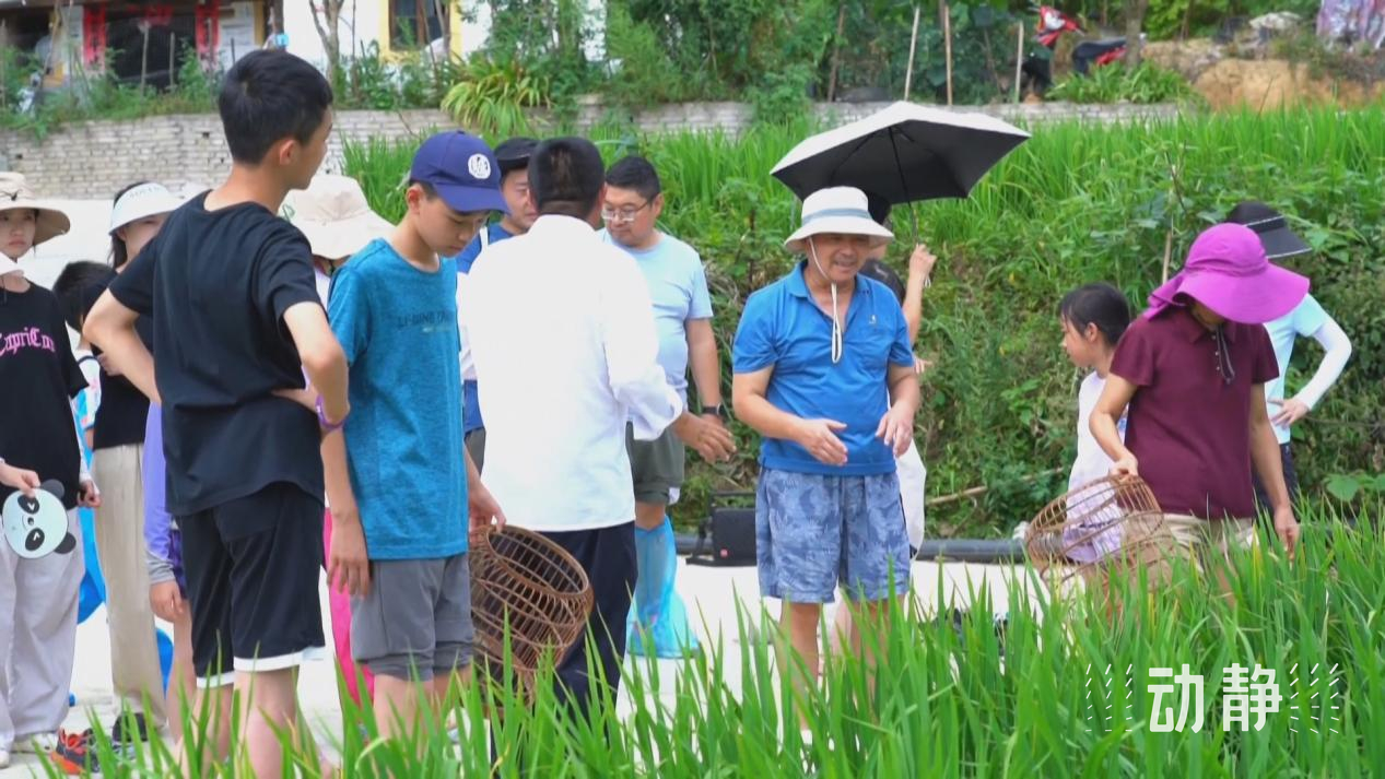 除了研学当地特色的非物质文化遗产,下田捉鱼,体验农耕文化也受到游客们的青睐。烈日当空,在丹寨县龙泉镇卡拉村农耕体验基地,来自广东的亲子团队摩拳擦掌,激动万分,大家把裤腿草草一卷便踩进田里,或弓腰或下蹲,努力寻找鱼儿的踪影,体验田间抓鱼的乐趣,享受难得的亲子时光。
