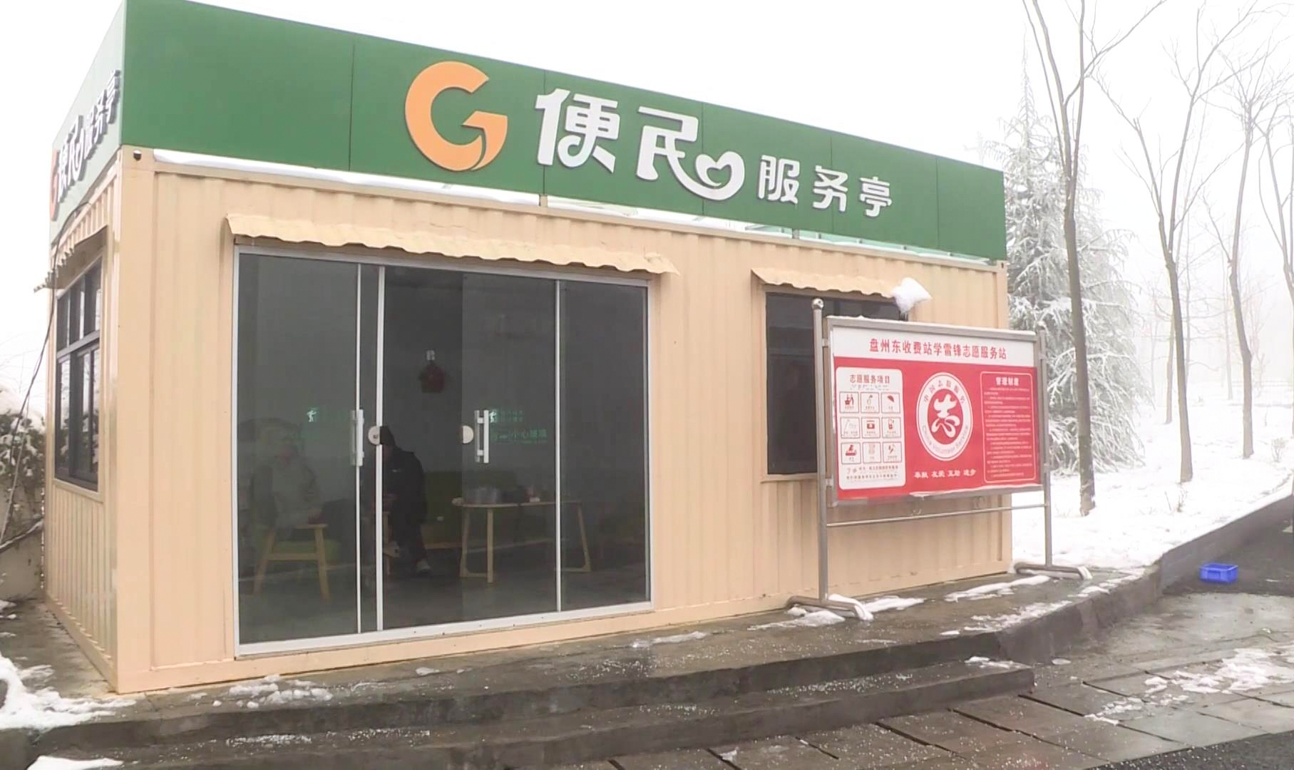 盘兴高速盘州东收费站工作人员还积极做好宣传引导、劝返等工作,同时还为等待的司乘人员开放便民服务亭,里面免费提供供暖设备、热水、充电等服务,让每一位司乘人员都感受到盘州的温暖。
